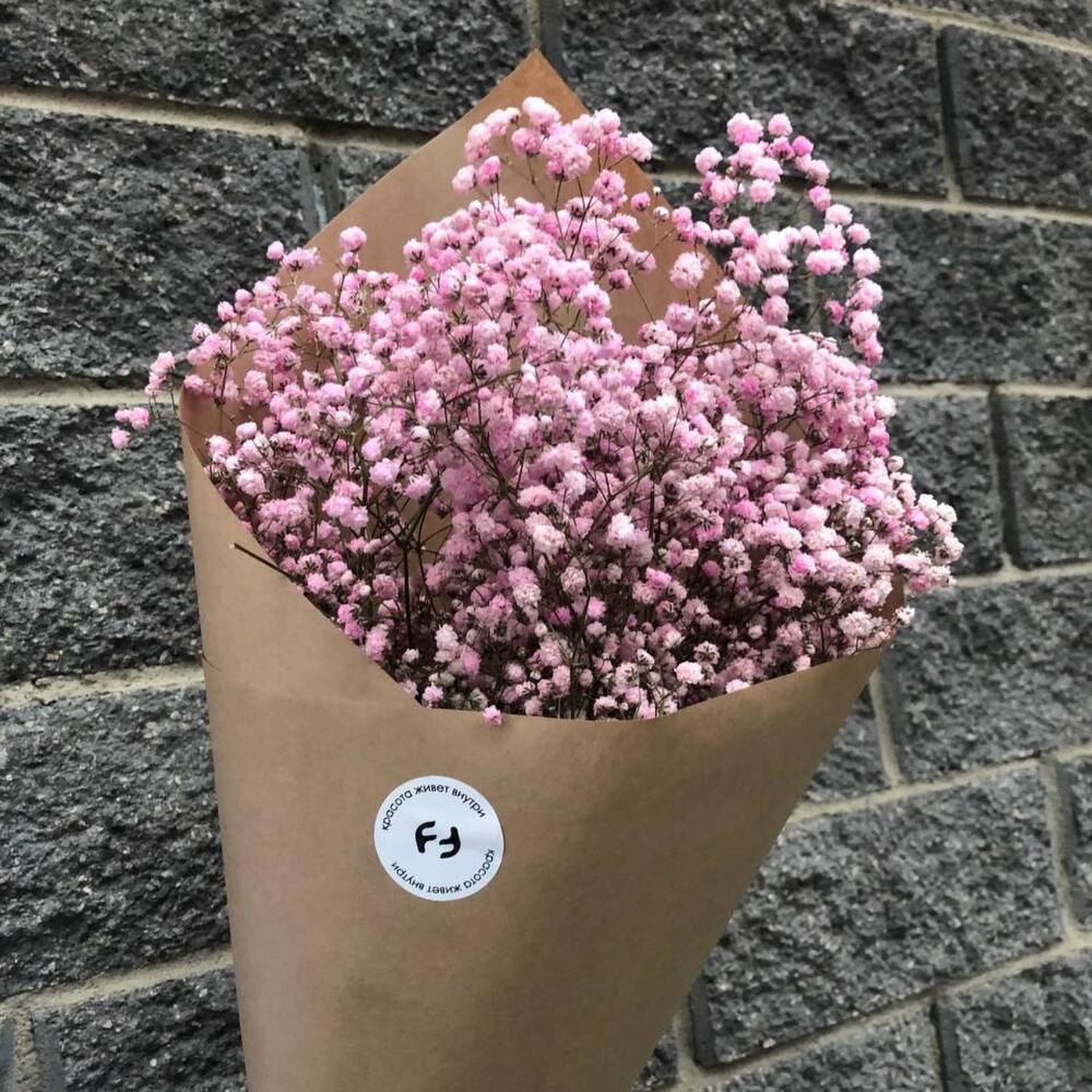Гипсофила розовая – 3 шт.Крафт – 1 шт.Лента атласная – 1 шт.