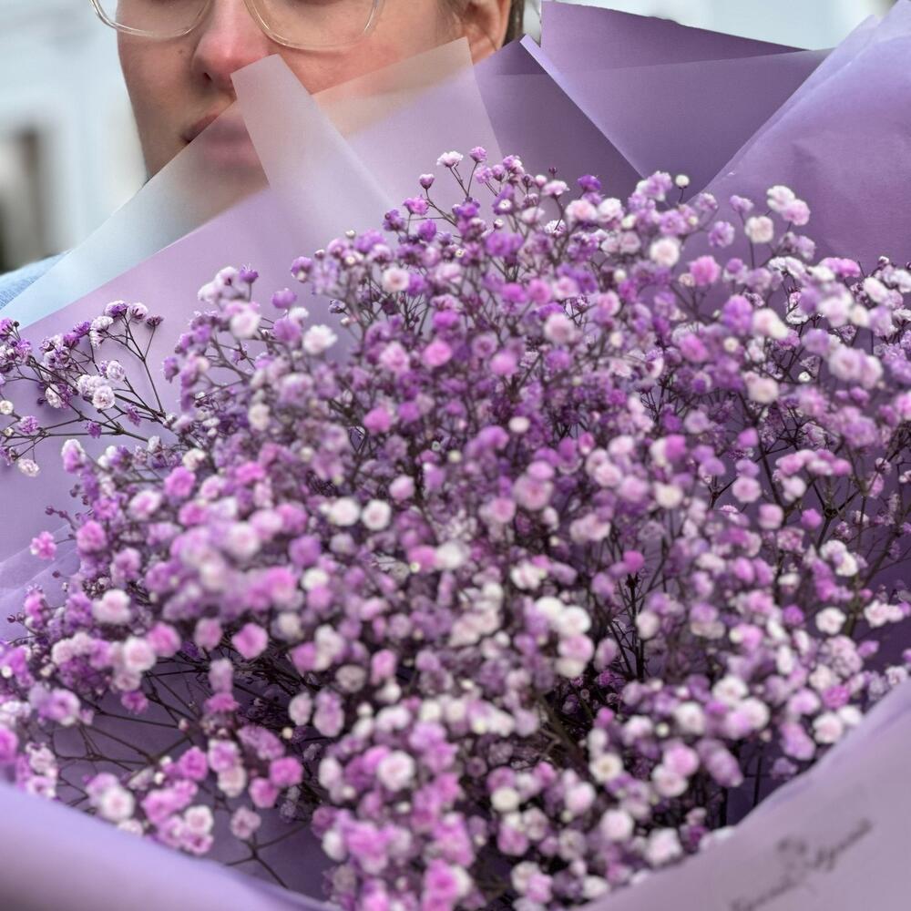 Один из самых стойких цветов – гипсофила – символизирует чистоту сердца, невинность, легкость, счастье и искренность.Сиреневая гипсофила символизирует благородство и красоту.Мы создали огромный и воздушный букет, чтобы вы могли впечатлить близких своим вниманием.Важно: … Показать ещёоттенок гипсофилы может немного меняться от холодного к теплому, от яркого к более светлому.