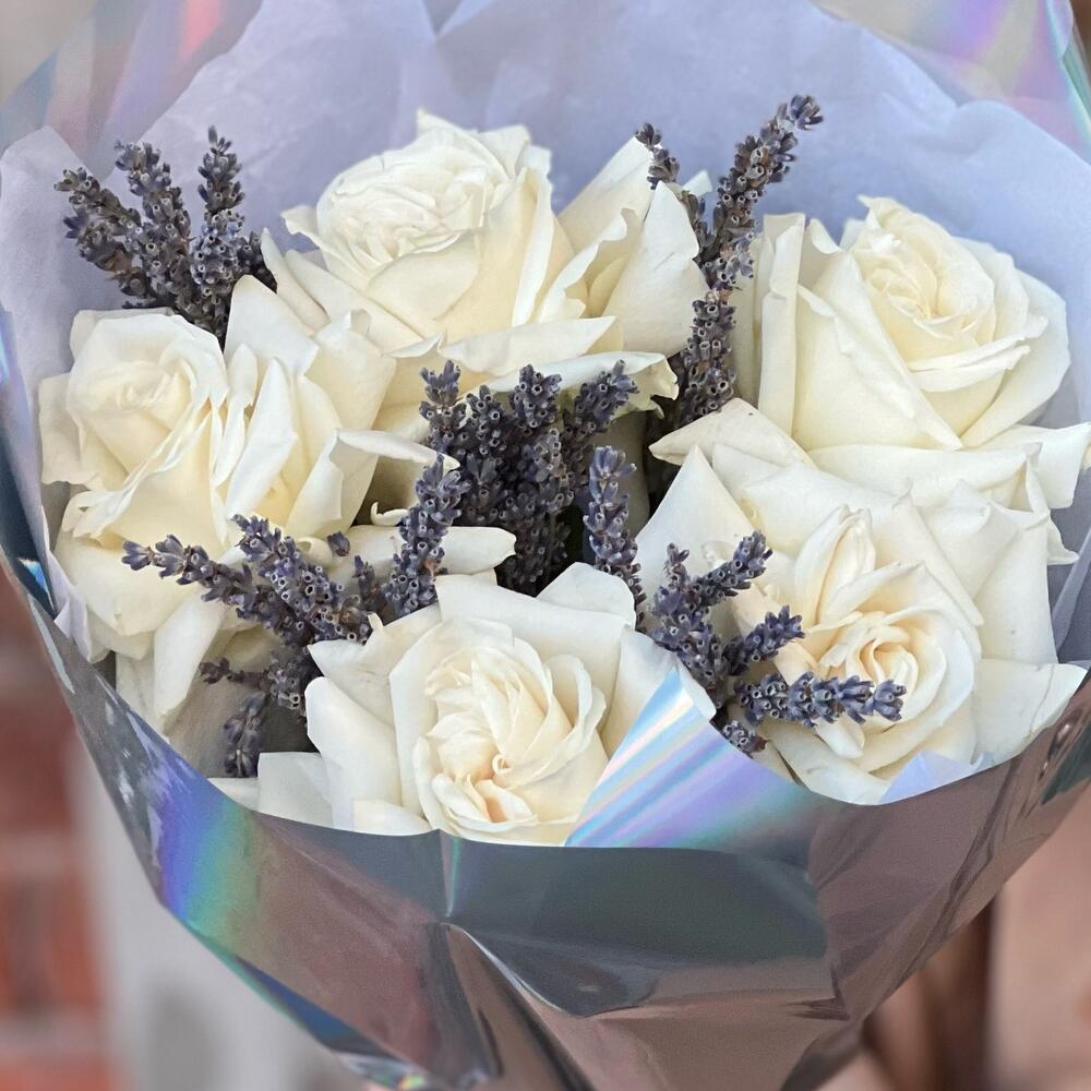 Белые розыЛавандаАроматный букет