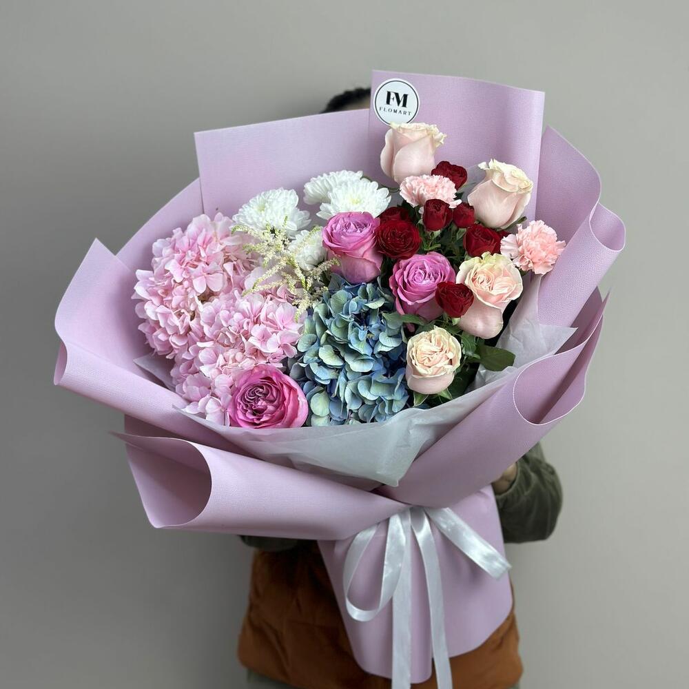 Гвоздики, Лизиантусы, Розы, Тюльпаны