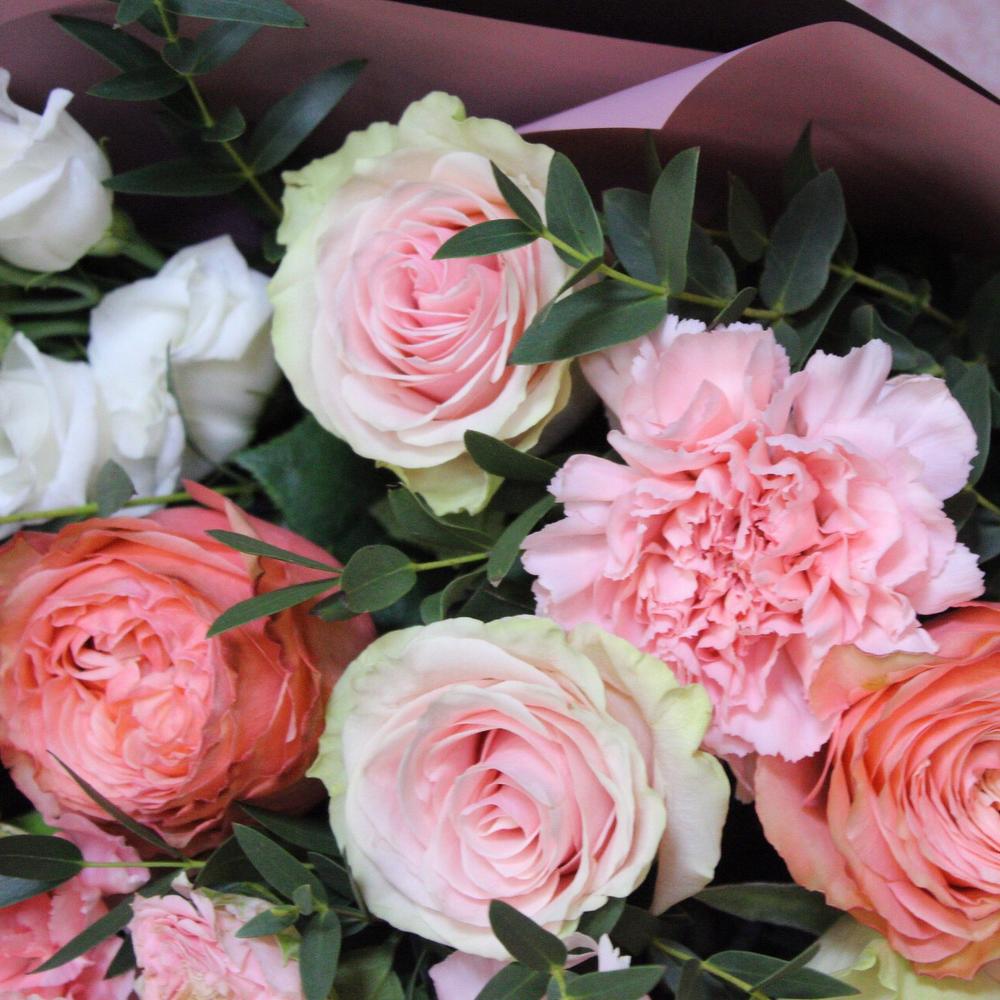 Категорий: Гвоздики, Кустовые розы, Лизиантусы, Пионовидные розы, Розы
